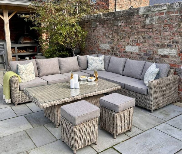 Amalfi Outdoor Large Corner Set With Riser Table + 2 Stools